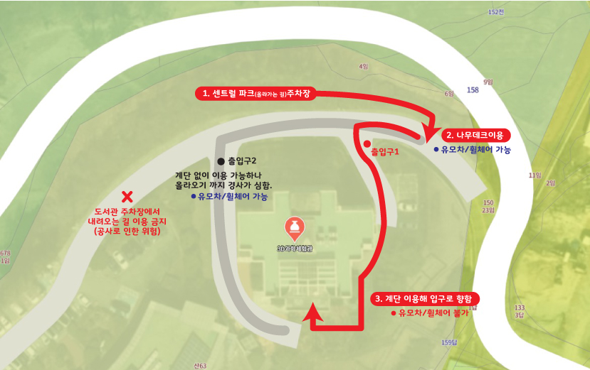 * 이동시 경사가 가파를 수 있으니 각별히 주의해 이동 바랍니다.